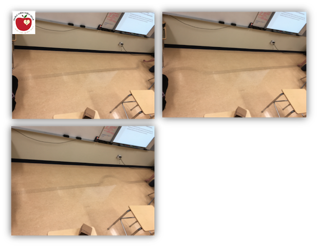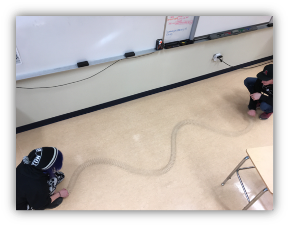 Kéo dài một cái slinky tốt (không bị rối) trên sàn khoảng 8–10 feet (đủ căng nhưng không được quá căng). Có thể yêu cầu 1 học sinh trợ giúp với bài thí nghiệm này.