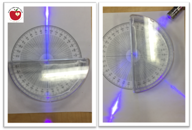 2. Tôi dùng đĩa nước và bút chỉ lazer để minh họa hiện tượng khúc xạ