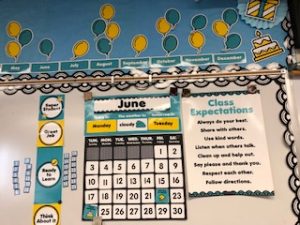 Thật là tuyệt vời cho các cuộc thảo luận về môn toán của chúng tôi. Hệ thống lịch không chỉ đặc biệt hữu ích cho việc ghi nhớ các chuyến đi thực địa mà còn bao gồm cả những ngày lễ. Vì vậy, tôi đang sử dụng một lịch thứ hai ở phía trước lớp học của tôi, trên bảng trắng bên cạnh biểu đồ clip. Tôi thích trên bảng trắng của mình có một lịch nhỏ hơn! Tôi có thể thêm thẻ spotlight cho các ngày nghỉ và chuyến đi thực địa một cách dễ dàng. Tôi cũng viết ra bất kỳ lời nhắc, chuyến đi thực địa, họp hội đồng và những ngày đặc biệt khác trong tháng lên bảng trắng bên cạnh lịch. Tôi rất yêu không gian này; nó rất đẹp, đầy màu sắc nhưng cũng vô cùng hữu ích. Nó có biểu đồ clip Aqua Oasis của tôi, kỳ vọng về lớp học, biểu đồ công việc, biểu đồ bỏ túi lịch biểu và lịch tất cả đều tập trung ở một nơi. Điều thú vị nhất đó là tất cả được phối hợp màu sắc một cách hài hòa!